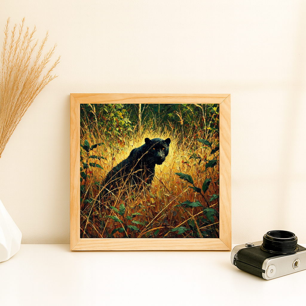 Dark Gaze – Black Panther Painting, Dramatic Jungle Cat Canvas Wall Art