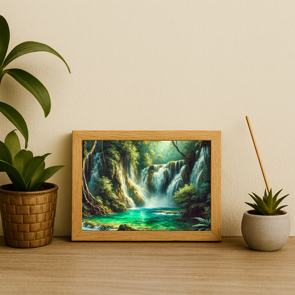 The Deafening Roar of Silence – Majestic Waterfall Painting, Nature Landscape Canvas Wall Art